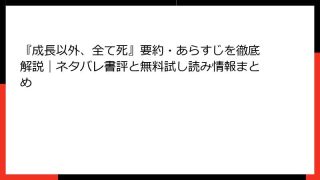 ビジネス実用 『成長以外、全て死』要約・あらすじを徹底解説|ネタバレ書評と無料試し読み情報まとめ