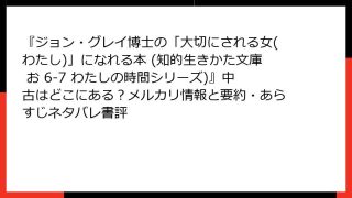 倫理学・道徳 『ジョン・グレイ博士の「大切にされる女(わたし)」になれる本 (知的生きかた文庫 お 6-7 わたしの時間シリーズ)』中古はどこにある?メルカリ情報と要約・あらすじネタバレ書評
