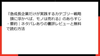 経営学・キャリア・MBA 『急成長企業だけが実践するカテゴリー戦略 頭に浮かべば、モノは売れる』のあらすじ・要約|ネタバレありの書評レビューと無料で読む方法