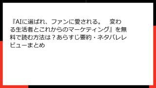 ビジネス実用 『AIに選ばれ、ファンに愛される。 変わる生活者とこれからのマーケティング』を無料で読む方法は?あらすじ要約・ネタバレレビューまとめ