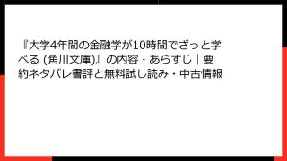 経営学・キャリア・MBA 『大学4年間の金融学が10時間でざっと学べる (角川文庫)』の内容・あらすじ|要約ネタバレ書評と無料試し読み・中古情報