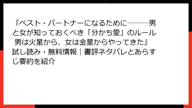『ベスト・パートナーになるために―――男と女が知っておくべき「分かち愛」のルール 男は火星から、女は金星からやってきた』試し読み・無料情報|書評ネタバレとあらすじ要約を紹介