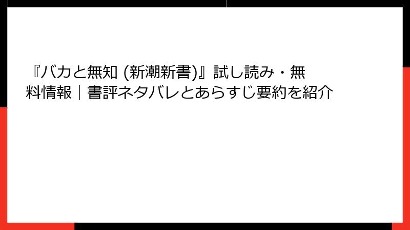 『バカと無知 (新潮新書)』試し読み・無料情報|書評ネタバレとあらすじ要約を紹介