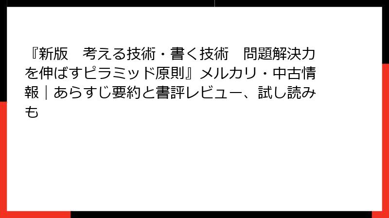 新版 考える技術・書く技術 問題解決力を伸ばすピラミッド原則:無料試し読みと中古入手の賢いガイド