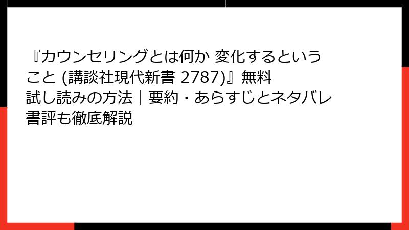 『カウンセリングとは何か 変化するということ』を賢く手に入れる:無料試し読みと中古探しの完全ガイド