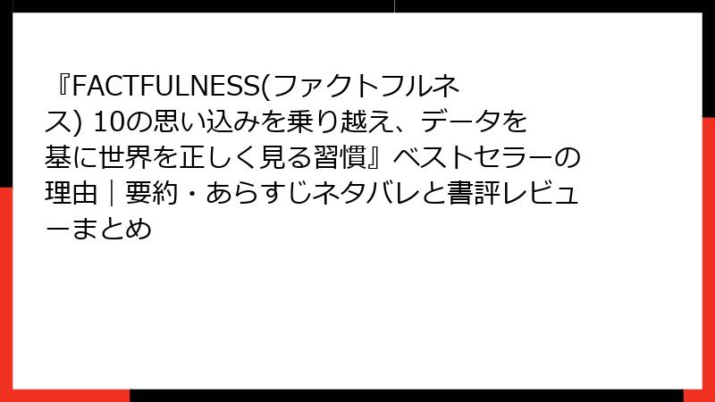 『FACTFULNESS(ファクトフルネス)』徹底要約&ネタバレ全開レビュー ─ 世界を「正しく」見るための最強の思考習慣