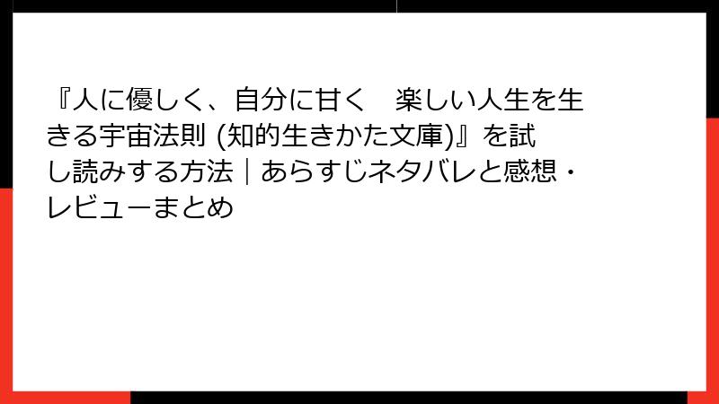 小林正観さんの心温まる一冊『人に優しく、自分に甘く 楽しい人生を生きる宇宙法則』。発売から人気沸騰中ですが、まずは試し読みで味見したいですよね? 今回は、Kindleをはじめとした電子書籍の無料試し読み方法をステップバイステップで解説。さらに、中古本の宝庫であるメルカリやブックオフなどの入手ルートを徹底調査。2025年11月現在の状況を基に、お得にゲットするヒントをお届けします。宇宙法則のように、流れに乗って手に入れちゃいましょう!
