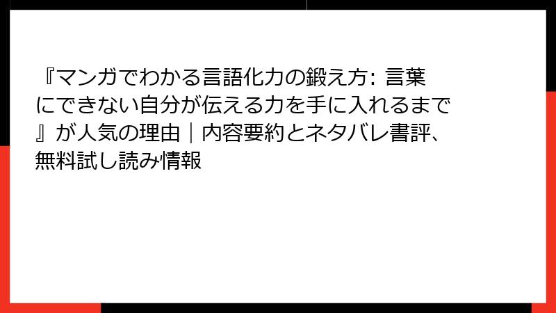 『マンガでわかる言語化力の鍛え方: 言葉にできない自分が伝える力を手に入れるまで』が人気の理由|内容要約とネタバレ書評、無料試し読み情報