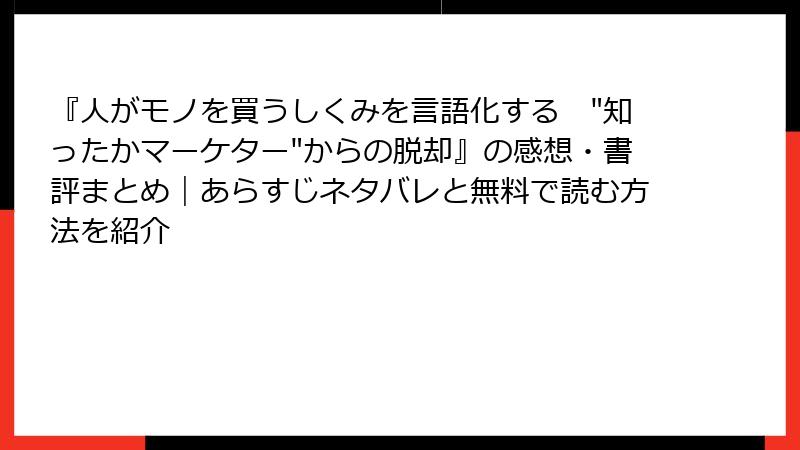 『人がモノを買うしくみを言語化する』無料試し読み&中古入手ガイド:お得に手に入れる全方法