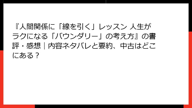 バウンダリーの指南書:『人間関係に「線を引く」レッスン』を推す読者像と著者の魅力