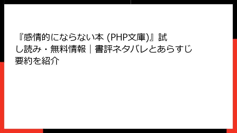 『感情的にならない本 (PHP文庫)』試し読み・無料情報|書評ネタバレとあらすじ要約を紹介