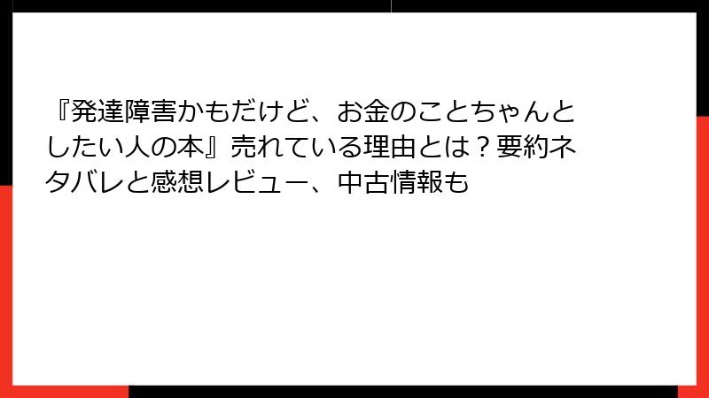 『発達障害かもだけど、お金のことちゃんとしたい人の本』レビュー大特集:読者の声から見える本当の魅力と課題