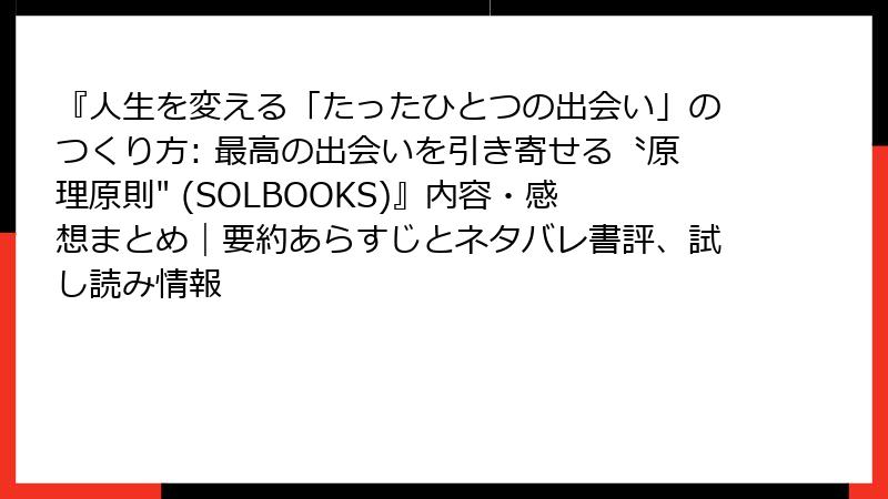 『人生を変える「たったひとつの出会い」のつくり方』:読者の声から見える本当の魅力と課題