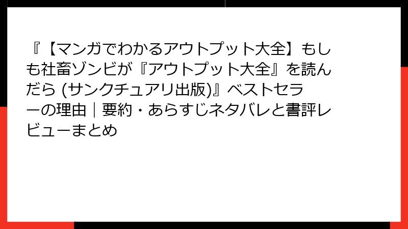 『【マンガでわかるアウトプット大全】もしも社畜ゾンビが『アウトプット大全』を読んだら (サンクチュアリ出版)』ベストセラーの理由|要約・あらすじネタバレと書評レビューまとめ