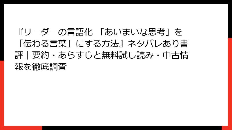 『リーダーの言語化』を無料で試し読み&中古でゲットする方法完全ガイド