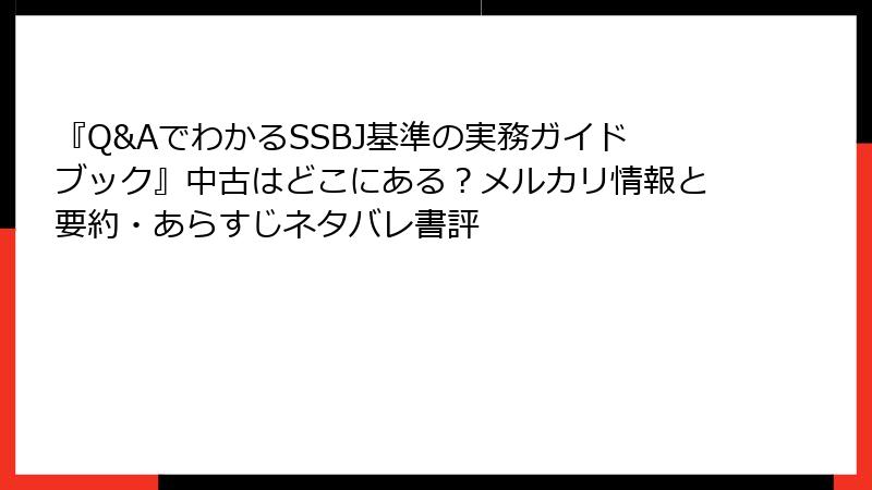 Q&AでわかるSSBJ基準の実務ガイドブック:無料試し読みと中古探しの完全ナビゲート