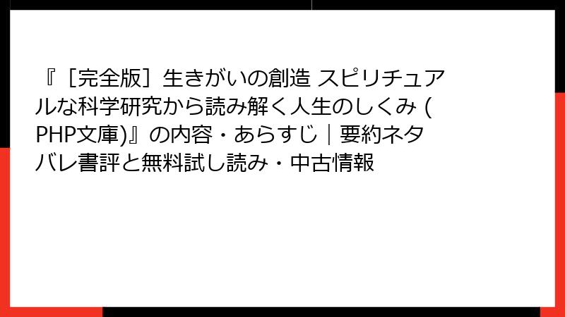 [完全版]生きがいの創造:無料試し読みと中古本探しの完全ガイド
