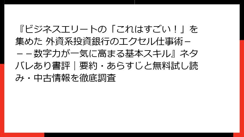 外資系投資銀行のエクセル仕事術:無料試し読みと中古本ハントの完全ガイド!