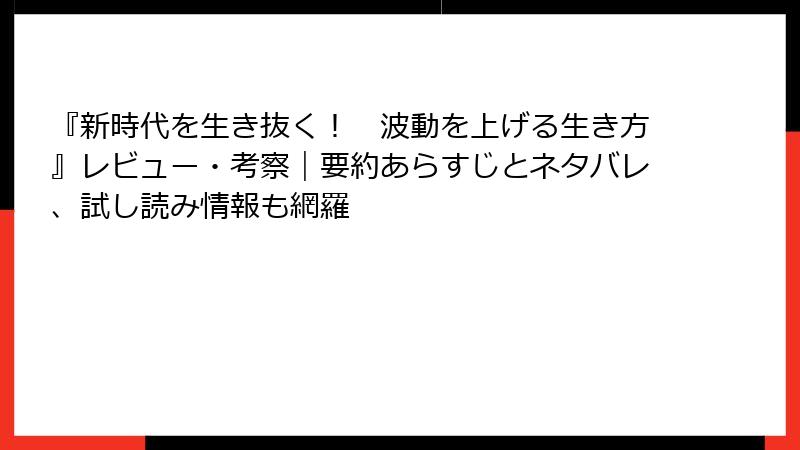 『新時代を生き抜く! 波動を上げる生き方』レビュー大解剖:波動の魅力と隠れた棘