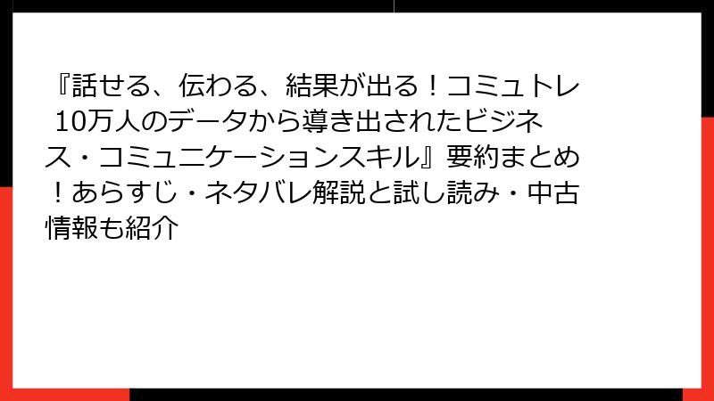 『話せる、伝わる、結果が出る!コミュトレ』レビュー大解剖:絶賛の嵐と意外なツッコミも