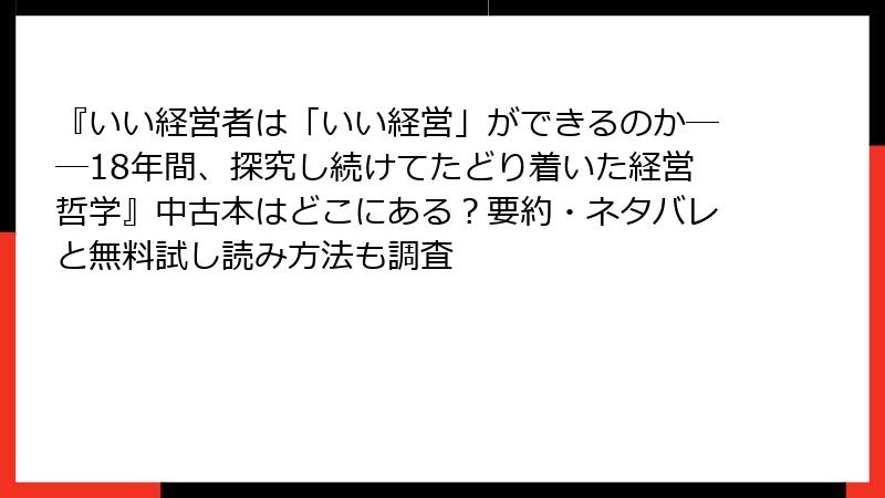 『いい経営者は「いい経営」ができるのか』を無料試し読み&中古入手の完全ガイド――お得に手に入れるコツを徹底解説
