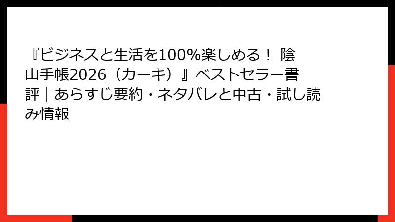 手帳の季節が本格化する12月、陰山手帳2026(カーキ)の購入を検討中の方は多いはず。私もカーキのシックなカバーが気になって仕方ありませんが、まずは中身をチェックしたいですよね。Kindleのようなデジタル試し読みが便利な時代ですが、この手帳は物理本中心。無料で試せる方法から、中古版の宝庫であるメルカリなどのマーケットプレイスまで、2025年12月現在の最新情報をブログ風にまとめました。発売直後(2025年9月頃)の今、中古はまだ希少ですが、掘り出し物が見つかるかも? あなたの手帳ライフをスタートさせるヒントにどうぞ!