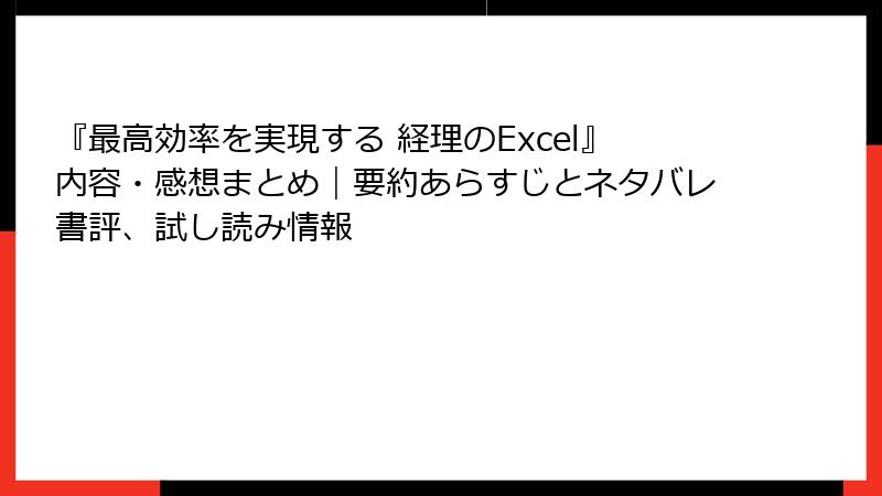 『最高効率を実現する 経理のExcel』内容・感想まとめ|要約あらすじとネタバレ書評、試し読み情報