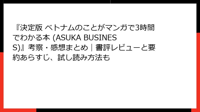 『決定版 ベトナムのことがマンガで3時間でわかる本 (ASUKA BUSINESS)』考察・感想まとめ|書評レビューと要約あらすじ、試し読み方法も