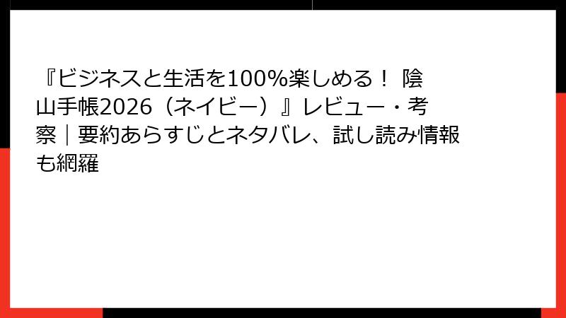陰山手帳2026は、ただの手帳ではなく、ビジネスと生活を100%楽しむためのパートナー。累計125万部のロングセラーとして知られるこの手帳、誰に特におすすめか? そして、考案者の陰山英男氏のバックグラウンドは? この記事では、読者像を詳しく分析し、その理由を深掘り。さらに著者の経歴や功績をブログ風に解説します。手帳選びで迷っているあなたに、読み応えのある内容をお届け!