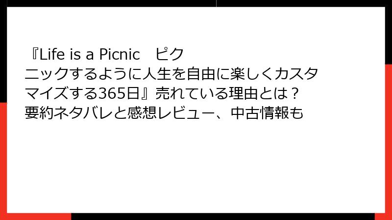 『Life is a Picnic ピクニックするように人生を自由に楽しくカスタマイズする365日』売れている理由とは?要約ネタバレと感想レビュー、中古情報も