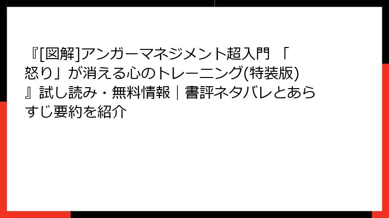 - 怒りをコントロールする究極のガイドブック:『[図解]アンガーマネジメント超入門 「怒り」が消える心のトレーニング(特装版)』の詳細レビュー