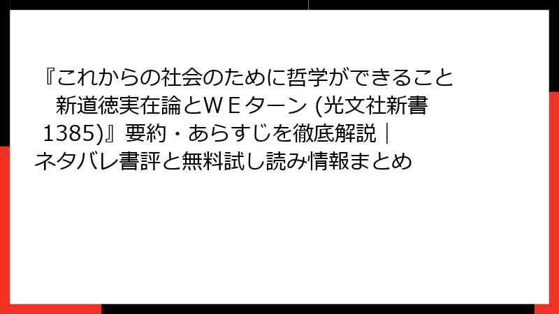 『これからの社会のために哲学ができること 新道徳実在論とWEターン (光文社新書 1385)』要約・あらすじを徹底解説|ネタバレ書評と無料試し読み情報まとめ