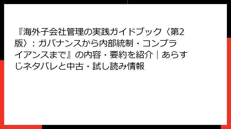 海外子会社管理の実践ガイドブック〈第2版〉の試し読み&中古入手術:コスパよく手に入れる全戦略