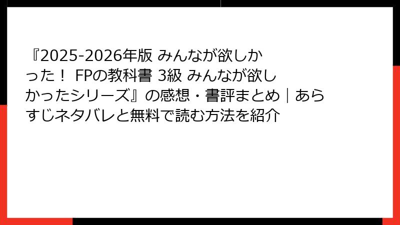 2025-2026年版 みんなが欲しかった! FPの教科書 3級:読者の本音レビューと書評を深掘り