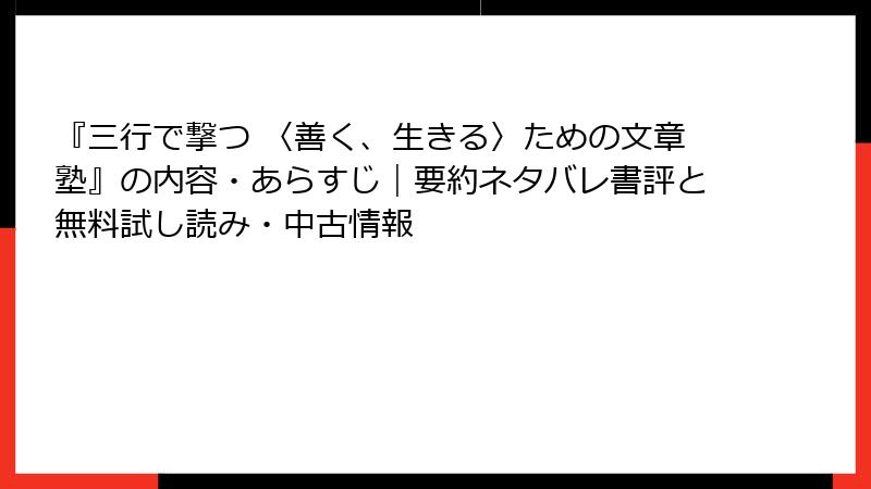 『三行で撃つ 〈善く、生きる〉ための文章塾』 無料試し読み&中古入手ガイド