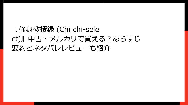 『修身教授録 (Chi chi-select)』中古・メルカリで買える?あらすじ要約とネタバレレビューも紹介