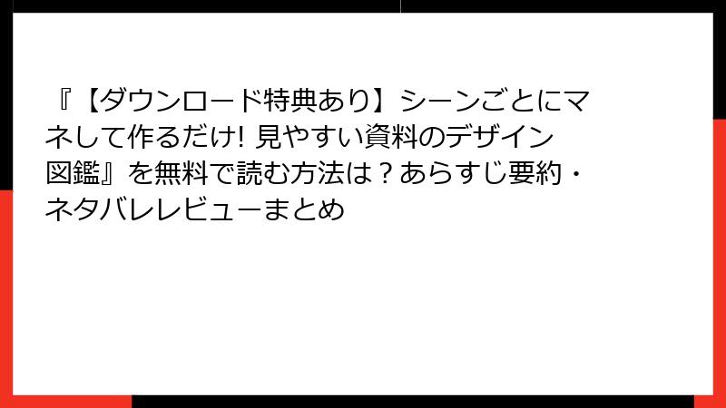 『【ダウンロード特典あり】シーンごとにマネして作るだけ! 見やすい資料のデザイン図鑑』を無料で読む方法は?あらすじ要約・ネタバレレビューまとめ