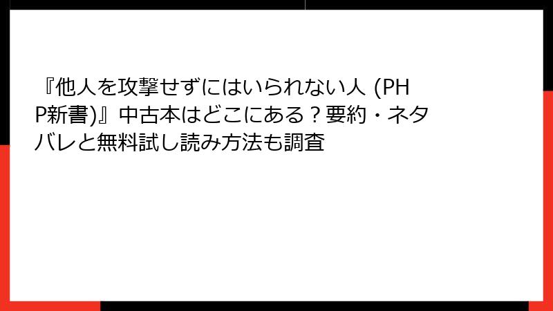 『他人を攻撃せずにはいられない人』を無料で試し読み&中古でお得に手に入れるガイド