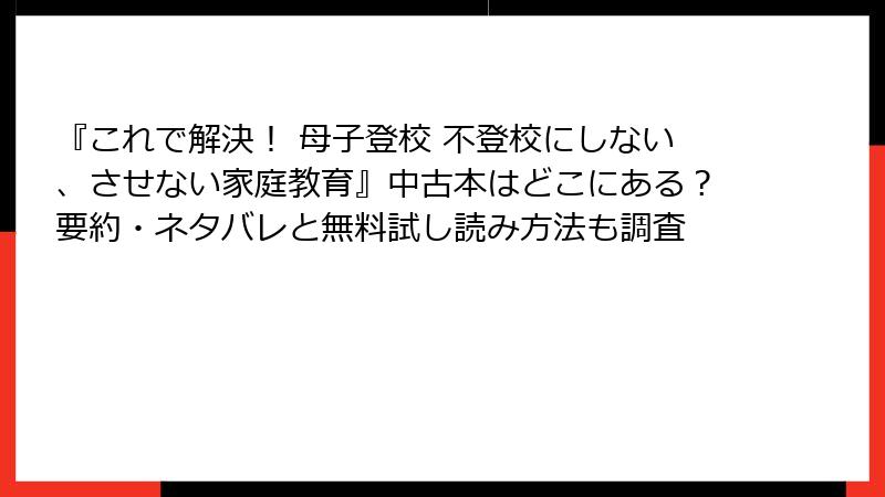 これで解決! 母子登校 不登校にしない、させない家庭教育 ~無料試し読みと中古入手のスマートガイド~