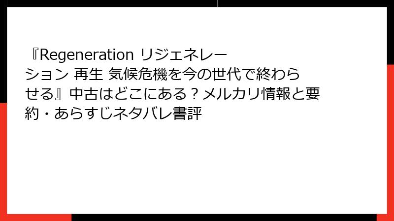 『Regeneration リジェネレーション 再生 気候危機を今の世代で終わらせる』中古はどこにある?メルカリ情報と要約・あらすじネタバレ書評