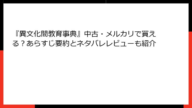 無料試し読みで魅力を確かめ、中古市場でポケットに優しい価格をゲット。『異文化間教育事典』は一冊で多文化の知を凝縮した逸品です。メルカリの1,700円台から始めて、Kindleサンプルの深みにハマるかも? あなたの学びの旅に、このガイドが小さなきっかけになれば幸いです。次は実践応用編でお会いしましょう。