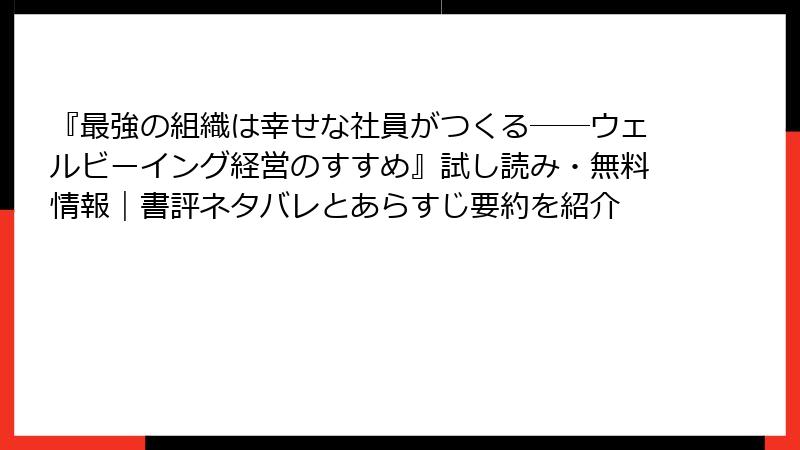 最強の組織は幸せな社員がつくる──ウェルビーイング経営のすすめ 無料試し読み&中古入手ガイド:賢く手に入れるコツ