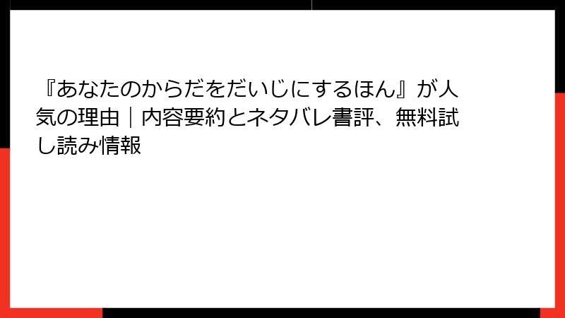 『あなたのからだをだいじにするほん』が人気の理由|内容要約とネタバレ書評、無料試し読み情報