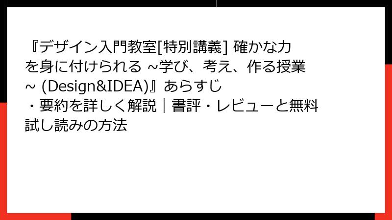 『デザイン入門教室[特別講義] 確かな力を身に付けられる ~学び、考え、作る授業~ (Design&IDEA)』あらすじ・要約を詳しく解説|書評・レビューと無料試し読みの方法