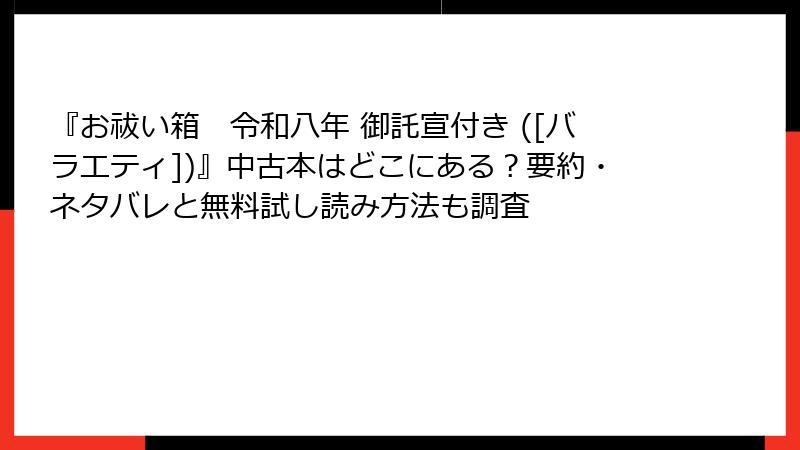 江原啓之『お祓い箱 令和八年 御託宣付き』を無料で試し読み&中古探しガイド:Kindleからメルカリまで徹底解説
