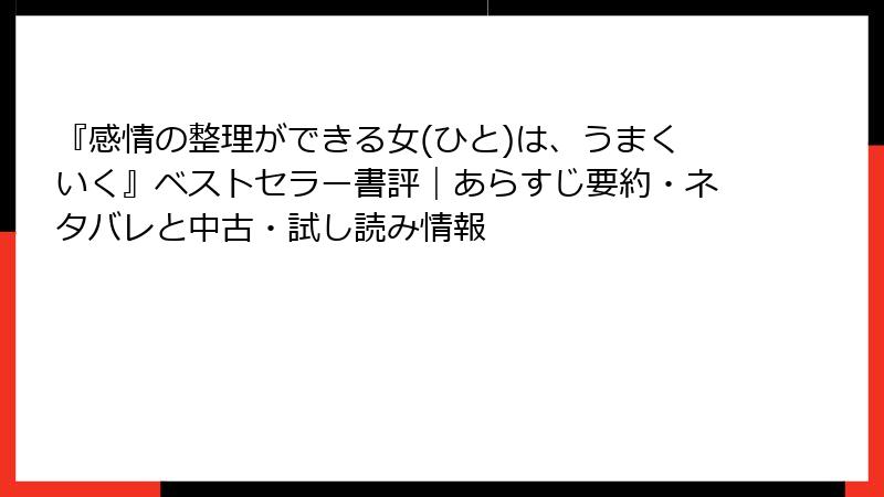 『感情の整理ができる女(ひと)は、うまくいく』ベストセラー書評|あらすじ要約・ネタバレと中古・試し読み情報