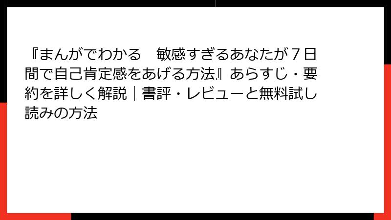 まんがでわかる 敏感すぎるあなたが7日間で自己肯定感をあげる方法:読者の本音レビューと深掘り考察