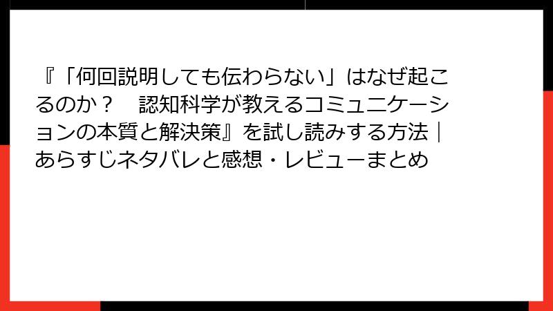 今回は、読書メーターやブクログ、X(旧Twitter)などのプラットフォームから寄せられたレビュー・感想、専門家による書評を徹底分析。絶賛の声が大半を占める一方で、「ビジネス寄りすぎて物足りない」「専門用語がハードル高い」といった批判も少数ながら見受けられます。ネタバレを交えつつ、ポジティブな考察から厳しい指摘まで、読み応えある形でまとめました。あなたの「伝わらない」体験が、ここで科学的に照らされるはずです。