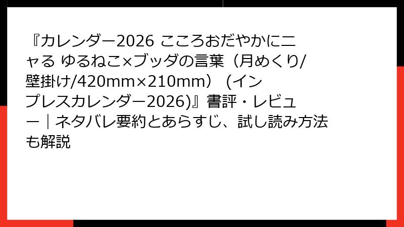 癒し満点のカレンダー2026 こころおだやかにニャる ゆるねこ×ブッダの言葉に興味津々の方、必見です! 猫の可愛いイラストとブッダの智慧が融合したこのカレンダーは、発売から人気沸騰中。物理書籍がメインですが、Kindle版は存在せず、試し読みのチャンスは限定的。でも、心配無用――無料で内容をチラ見できる方法を徹底解説します。さらに、中古市場の状況も調査。メルカリやヤフオクなどのフリマ・オークションサイトをチェックした結果を詳しくお届けします。