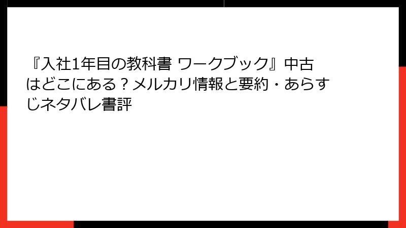 - 一部の過激な考察: ブログなどで「入社1年目の教科書がゴミと言われる理由」として、著者の華々しい経歴(東大・ハーバード)が「凡人には参考にならない」と徹底批判されるケースあり。ただしワークブック版は「Q&Aで現実味が増した」と緩和意見も。